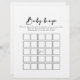 Dieses elegante Baby Bingo Duschspiel eignet sich perfekt für eine rustikale Babydusche. Das einfache und elegante Design zeichnet sich durch klassische und extravagante Schriftzeichen in Schwarz und Weiß aus.