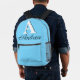 Ein personalisierter monogramm Rucksack, der in einem modernen, eleganten Stil entworfen wurde. Dieser elegante, helle Cyan-Rucksack verfügt über ein fett weißes "A" mit schwarzem Schatten und einen anpassbaren Namen im Black Script-Schriftart. Ideal, um dem Alltag eine Touch von Eleganz und Personalisierung hinzuzufügen. Der Rucksack eignet sich ideal für Schulungen, Arbeitsaufenthalte oder lässige Ausflüge und vereint Funktionalität mit einem schicken Design, das sich durch seine herausragende Qualität auszeichnet.