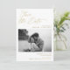 Diese moderne Gold Foto Save the Date-Karte verfügt über ein Foto der demnächst erscheinenden Neuvermählten gepaart mit einem eleganten goldenen romantischen Drehbuch.