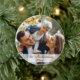 Personalisieren Sie Ihre Urlaubspalme oder Wohngestaltung mit einem modernen, familiengeführten Keramik-Ornament, das Ihren Familiennamen und das Jahr mit Ihren Fotos vorn und hinten zeigt. Dieses individuelle, einzigartige Design zeichnet sich durch einen eleganten kalligraphischen Stil Schriftart-Typ in Bronze-Farbe über einen schicken weißen Farbverlauf, die Ihre Familien Foto. Die perfekte Hauswärme, die Ergänzung zu Ihrer Feriendekoration.