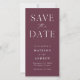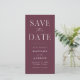 Mit dieser stilvollen, modernen Foto Save the Date-Karte verkünden Sie Ihr Hochzeitstag. Das Design zeigt "Save the Date" auf der Vorderseite in weißen Serifen und Skript-Schriftart mit einem Wein/lila Hintergrund. Personalisieren Sie die minimalistische Ankündigung Datum freihalten, indem Sie Namen, Datum und Hochzeitsort hinzufügen. Die Karte kehrt um, um Ihr Lieblings-Verlobung-Foto anzuzeigen. Die Ankündigung Datum freihalten ist perfekt für jedes Hochzeitsthema.