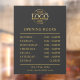 Präsentieren Sie Ihre Geschäftszeiten mit einer polierten und beruflichen Fensterverkleidung, die auf moderne Unternehmensumgebungen und kleine Unternehmen zugeschnitten ist. Mit einem eleganten, minimalistischen Design lässt sich dieses Fensterheber vollständig mit Ihrem Firmenlogo und den Betriebsstunden anpassen. Es ist die perfekte Lösung, um das Aussehen Ihres Schaufensters zu verbessern und gleichzeitig eine klare und effektive Kommunikation mit den Kunden zu gewährleisten. Ideal für Unternehmen, die ein raffiniertes Markendesign suchen.