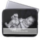 Personalisieren Sie diese moderne Laptop-Hülle, indem Sie Ihr eigenes Foto und Ihren Namen hinzufügen. Der Fotobereich deckt den gesamten Bereich bis zu den Rändern ab, und der Platz für Ihren Namen oder Sondertext ist ein mattiertes durchsichtiges Weiß.