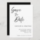 Eine elegante handgeschriebene Schrift Save the Date Hochzeitsankündigung. Diese Save the Date-Karte verfügt über einen eleganten Skripttext mit einem einfachen Schwarz-Weiß-Design. Passen Sie den Text mit allen Details für Ihren besonderen Tag an.