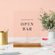 Modernes, elegantes HochzeitsAcrylzeichen für Ihre offene Bar mit minimalistischem Schwarz-Weiß-Design mit modernen Linien, einem eleganten Script-Schriftart und einem klassischen Serif-Schriftart. Das Acrylzeichen kann mit oder ohne Holzständer bestellt werden. Karo in der Kollektion "Modernes Elegantes".