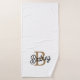 Das moderne elegante Monogram Name Black Gold Script Badtuch Set kombiniert Luxus und Personalisierung in Ihrem Bad. Dieses Set zeichnet sich durch ein elegantes schwarzes Design aus, das mit einem ausgeklügelten Goldskript geschmückt ist. Hier können Sie ein individuelles Monogramm und einen Namen für eine einzigartige Touch hinzufügen. Die Handtücher sind aus hochwertiger, gepolsterter Baumwolle gefertigt und absorbierend und weich und sorgen für ein komfortables und stilvolles Ambiente. Dieses Set verfügt über Badehandtücher und Handtücher, die eine elegante und persönliche Touch in Ihre Badezimmereinrichtung einbringen.