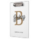 Modernes elegantes Monogramm Name Black Gold Scrip Klemmbrett