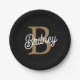 Modernes elegantes Monogramm Name Black Gold Scrip Pappteller