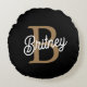 Modernes elegantes Monogramm Name Black Gold Scrip Rundes Kissen