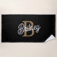 Modernes elegantes Monogramm Name Black Gold Scrip Strandtuch