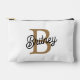 Der moderne elegante Monogram Name Black Gold Script Accessory Pouch zeichnet sich durch ein ausgeklügeltes Design mit einem eleganten schwarzen Äußeren und elegantem Goldskriptmonogramming aus. Dieses Accessoire eignet sich perfekt für die Organisation von Kleinartikeln wie Kosmetik, Schmuck oder Büroartikeln. Seine raffinierte Optik macht es für den beruflichen und persönlichen Gebrauch geeignet, während die personalisierte Touch Ihren Alltagsessentiellen ein einzigartiges und stilvolles Element hinzufügt.