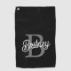 Das moderne elegante Monogram Name Black Gray Script Golf Handtuch kombiniert Luxus mit praktischer Funktionalität für Ihr Golfspiel. Dieses Handtuch ist mit einem eleganten schwarzen Design mit grauer Schrift personalisiert und mit einem eleganten Monogramm und einem Namen versehen. Es verleiht Ihrem Golfzubehör eine raffinierte Touch. Aus hochwertigen, absorbierenden Materialien gefertigt, bietet es eine hervorragende Funktionalität auf dem Platz und hilft Ihnen, Ihre Klubs sauber und trocken behalten. Dieses Handtuch eignet sich ideal für den persönlichen Gebrauch oder als raffiniertes Geschenk für Golfliebhaber und verbindet personalisierte Eleganz mit dem wesentlichen Nutzen. Wenn Sie Hilfe bei der Gestaltung oder Anpassung benötigen, lass mir einfach Bescheid!