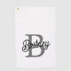 Das moderne elegante Monogram Name Black Gray Script Golf Handtuch kombiniert Luxus mit praktischer Funktionalität für Ihr Golfspiel. Dieses Handtuch ist mit einem eleganten schwarzen Design mit grauer Schrift personalisiert und mit einem eleganten Monogramm und einem Namen versehen. Es verleiht Ihrem Golfzubehör eine raffinierte Touch. Aus hochwertigen, absorbierenden Materialien gefertigt, bietet es eine hervorragende Funktionalität auf dem Platz und hilft Ihnen, Ihre Klubs sauber und trocken behalten. Dieses Handtuch eignet sich ideal für den persönlichen Gebrauch oder als raffiniertes Geschenk für Golfliebhaber und verbindet personalisierte Eleganz mit dem wesentlichen Nutzen. Wenn Sie Hilfe bei der Gestaltung oder Anpassung benötigen, lass mir einfach Bescheid!