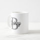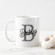 Die moderne elegante Monogram Name Black Gray Script Coffee Tasse bietet eine stilvolle und personalisierte Möglichkeit, Ihre Lieblingsgetränke zu genießen. Diese Tasse ist mit einem raffinierten schwarzen Design mit grauem Schriftzeichen versehen und mit einem eleganten Monogramm und Namen versehen, was sie zu einer einzigartigen und eleganten Ergänzung Ihrer Küche oder Ihres Büros macht. Aus hochwertiger Keramik gefertigt, ist es sowohl haltbar als auch ästhetisch angenehm, ideal für den täglichen Gebrauch oder als nachdenkliches Geschenk. Diese Tasse verbindet personalisierten Stil mit praktischer Funktionalität und sorgt für eine Touch Eleganz in Ihrem Morgenprogramm. Wenn Sie spezielle Designwünsche haben oder individuelle Anpassungen benötigen, können Sie sich jederzeit gefragt fühlen!