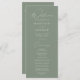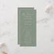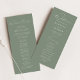 Elegantes Hochzeitsprogramm mit einem modernen weißen Kalligraphieskript mit einem schlauen grünen Hintergrund, um ein Design zu schaffen, das perfekt für Hochzeiten aller Stile und Jahreszeiten ist. Personalisieren Sie die Front des modernen Hochzeitsprogramms mit Ihren Namen, Hochzeitstag und Ort, und die Reihenfolge der Zeremonie. Das einfache sage-grüne Hochzeitsprogramm kehrt um eine Liste Ihrer Hochzeitsfeier anzuzeigen. Das Design wurde entworfen, um sich mit unserer Hochzeitskollektion "Moderne Elegance" abzustimmen.