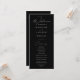 Elegantes Hochzeitsprogramm mit einem modernen weißen Kalligraphieskript mit schwarzem Hintergrund, um ein Design zu schaffen, das perfekt für Hochzeiten aller Stile und Jahreszeiten geeignet ist. Personalisieren Sie die Front des modernen Hochzeitsprogramms mit Ihren Namen, Hochzeitstag und Ort, und die Reihenfolge der Zeremonie. Das einfache Schwarz-Weiß-Hochzeitsprogramm kehrt um eine Liste Ihrer Hochzeitsfeier anzuzeigen. Das Design wurde entworfen, um sich mit unserer Hochzeitskollektion "Moderne Elegance" abzustimmen.