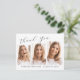 Diese moderne, elegante 3-Foto-Abschluss-Postkarte "Danke" mit Designelementen moderner Texte, die mit eleganter Kalligraphie-Schrift verschmolzen sind. Ihre Fotos werden auf der Vorderseite der Karte angezeigt, während die Rückseite der Karte personalisierten Textraum für eine Dankeschön-Nachricht bietet oder leer verlassen werden kann, wenn Sie Ihre Nachricht handschreiben möchten. Die Hintergründe sind schick weiß und schwarz oder lassen sich einfach an die Farben Ihrer Wahl anpassen.