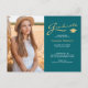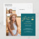 Diese doppelseitige 2-Foto-stilvolle Abschluss-Ankündigung oder danke Ihnen Postcard, verfügt über modernen Text mit eleganten Kalligrafien-Skript in goldfarben und weiß auf aquamarin. Fotos sind vorne und hinten. Um mehr zu sehen, besuchen Sie meinen Shop hier unter "www.Zazzle.com/LakeViewCardCo". Danke
