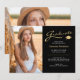 Diese doppelseitige 2-Foto-stilvolle Abschluss-Ankündigung oder Dankeschön-Karte, verfügt über modernen Text verschmolzen mit eleganten Kalligraphie-Skript in goldfarben und weiß auf schwarz. Fotos sind vorne und hinten, ideal für das Framing. Der Hintergrund kann einfach an eine Farbe Ihrer Wahl angepasst werden. Um mehr zu sehen, besuchen Sie meinen Shop hier unter "www.Zazzle.com/LakeViewCardCo". Danke