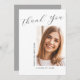 Diese moderne, elegante 1-Foto-Abschluss "Danke"-Karte bietet Designelemente aus modernem Text, die mit eleganten Kalligrafien verschmolzen sind. Ihr Foto wird auf der Vorderseite der Karte angezeigt, während die Rückseite der Karte personalisierten Platz für eine Dankeschön-Nachricht bietet oder leer verlassen werden kann, wenn Sie Ihre Nachricht handschreiben möchten. Die Hintergründe sind weiß auf der Vorderseite und silbergrau auf der Rückseite oder können leicht an die Farben Ihrer Wahl angepasst werden.