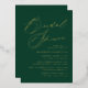 Einfache Braut-Dusche mit "Brautparty" in einer Goldfolie-Kalligraphie-Schrift mit grünem Hintergrund. Persönliche Einladungen der Brautdusche in Grün und Gold mit dem Namen und den Duschdetails der Braut. Das moderne Brautparty lädt zu einem soliden grünen Hintergrund zurück.