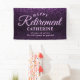 Modernes Happy Retirement Individuelle Name Banner mit festlichen lila Glitzer funkelnd Konfetti Illustrationen. Personalisieren Sie Ihre Daten mit Ihrem Namen und weiteren 1 oder 2 Zeilen benutzerdefinierten Text. Dies ist die Lila, die auf schwarzer Version lila ist.