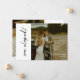 Moderne, elegante Script 2-Foto Hochzeit 'We Eloped' Announcement Card. Fügen Sie Braut- und Bräutigam-Namen hinzu, und passen Sie mit 2 Ihrer Lieblings-Hochzeitskartons auf die Vorder- und Rückseite dieser minimalistischen, "nur verheirateten" Hochzeitskarte.