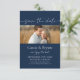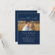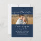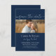 Modernes, elegantes Script Save the Date Monogram Einladung. Dieses einladende Foto verbindet schlichte Eleganz mit minimalistischem Design mit einem Foto, um Ihren besonderen Tag zu begehen. Monogramm auf der Rückseite und minimales marineblau-weiß Design für Ihre Hochzeit, Jubiläum oder besondere Anlass.