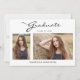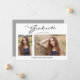 Diese moderne, elegante 2-Foto-Abschluss-Ankündigungskarte besticht durch Designelemente moderner Texte, die mit eleganten Kalligrafien verschmolzen sind. Die Fotos werden auf der Kartenvorderseite angezeigt, während auf der Kartenrückseite personalisierte Textstellen für Informationen über den Abschluss und die künftige Reise zur Verfügung stehen. Die Hintergründe sind weiß auf der Vorderseite und silbergrau auf der Rückseite oder können leicht an die Farben Ihrer Wahl angepasst werden. Um mehr zu sehen, besuchen Sie meinen Shop hier unter "www.Zazzle.com/LakeViewCardCo". Danke