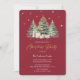 Unser Design zeigt ein elegantes und modernes Aquarellbild von drei Weihnachtsbäumen mit Geschenken unter einem roten Hintergrund mit Imitaten goldenen Sternen und Schneeflocken.