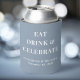 Chic dusty blue bietet Ihnen die passenden Cocktails für Ihre Hochzeitsfeier, Ihr Abendessen in der Probe, Ihre Verlobungsfeier und andere Hochzeitsfeiern mit "Eat Drink & Celebrate", Ihren Namen und Ihrem Hochzeitstag in eleganter weißer Typografie.