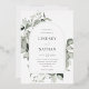 Elegante Aquarellfarben Eukalyptus Hochzeitseinladung mit einem silbernen Folienrahmen und Kalligraphie-Schriftart. Bearbeiten Sie diese Hochzeitsvorlage selbst mit den Online-Tools von Zazzle.