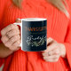 Trinken Sie Ihren morgendlichen Kaffee oder Tee mit einer Erinnerung, um dankbar zu sein. Dieses moderne Eukalyptus-Gefühl Grateful Tasse verbindet elegante Aquarellfarben-Eukalyptuszweige, verbrannte Orangenakzente und einen tiefblauen Hintergrund für einen zeitlosen Sturzlook. Ein perfektes Erntedank Geschenk oder ein gemütlicher Alltag.