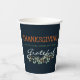 Servieren Sie Ihre Gäste stilvoll mit diesen modernen Eukalyptus Gefühl Grateful Paper Cups. Der elegante Mix aus Aquarelleukalyptus, verbrannten Orangenknospen und dunkelblauem Hintergrund schafft einen ausgeklügelten Erntedank-Look - perfekt für Party, Ansammlungen, die gerne Freunde sind, oder Herbstfeiern.