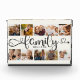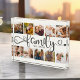 Moderner, benutzerdefinierter Collage-Block mit Platz für 10 Fotos rund um ein trendiges Wirbles Skript lesen FAMILY und Ihr individuelle Name unten. Das ist die kohlegraue und Elfenbeinversion.