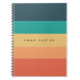 Personalisiertes Colorblock-Notebook mit horizontalen Streifen in Aquamarinen und warmen Tönen. Das Produkt zeichnet sich durch ein schlankes Farbblockdesign aus und zeigt fünf horizontale Streifen in tiefer Marine, aquamarin grün, Senfgelb, weichem Pfirsich und abgestuften Korallen, die eine warme und moderne Ästhetik ausstrahlen. Sie können das Design mühelos personalisieren, indem Sie Ihren Namen hinzufügen, sodass es ein perfektes Geschenk für Studenten, Profis oder Journalisten Enthusiasten.