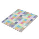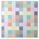 Es handelt sich um ein trendiges und stilvolles Design mit mehrfarbigen Quadraten, die in einem karierten Muster auf einem neutralen Gitterhintergrund angeordnet sind. Die Quadrate sind in verschiedenen Farben wie Blau, Grün, Rosa, lila, Gelb, Grau, Orange und Regenbogenpastelltönen gehalten und bilden ein einzigartiges geometrisches Schachbrettmuster.
