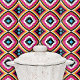 Moderne, farbenfrohe Keramik mit einem nahtlosen Dekorationsmuster aus geometrischen Formen in Rosa, Türkis, Gelb, Schwarz und Weiß.