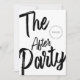 Moderner Chic After Party Empfang Hochzeit Einladung mit großer überdimensionaler Typografie in schwarzer Handschrift Marker Stil auf einem sauberen weißen Hintergrund. Individuelle Name und Dattelkreis auf der Vorderseite. Sie können den Rücken mit all Ihren Veranstaltungsdetails anpassen. Editierbar, indem Sie auf die Schaltfläche "Personalisieren" klicken. Vergessen Sie nicht, die koordinierenden Elemente der Kollektion für eine moderne, lustige und einzigartige Hochzeitssuite Karo.
