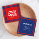 Modernes, feines Grenzrot und Blau Quadratische Visitenkarte