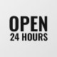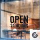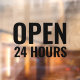 Modernes feines Schwarz "rund um die Uhr geöffnet" Fensteraufkleber