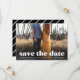 Ankündigen Sie Ihre Hochzeit mit unseren stilvollen Modern Bold White Typografy Save the Date Fotokarten. Die moderne Speicherkarte zeigt das Foto Ihrer Verlobung mit "Save the Date" in einem fett-weißen Textüberlagerungsformat an. Personalisieren Sie die Karte, indem Sie Ihre Namen, das Hochzeitstermin und den Hochzeitsort hinzufügen. Die Karte kehrt zu einem anpassbaren schwarz-weiß gestreiften Hintergrund zurück.