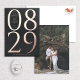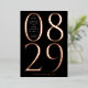 Diese moderne und fett Save the Date Karte zeigt das Datum Ihrer Hochzeit in extra großen Ziffern in realen Rose Gold-Folie Typ auf einem schwarzen Hintergrund. Die Namen des Paares und der Ort der Hochzeit werden innerhalb der Null für Monate von Januar bis September und zum links von der Zahl von Oktober bis Dezember angezeigt. Diese schicke Save the Date-Karte wird eine Aussage machen und den Ton für Ihre Hochzeit Set. Die Rückseite des Save the Date hat Platz für ein vollflächiges Foto.