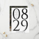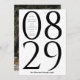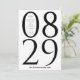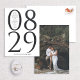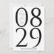 Diese moderne und fett Save the Date gestaltete Karte zeigt das Datum Ihrer Hochzeit in extra großen Ziffern in schwarzem Schrift auf weißem Hintergrund. Die Namen des Paares und der Ort der Hochzeit werden innerhalb der Null für Monate von Januar bis September und zum links von der Zahl von Oktober bis Dezember angezeigt. Diese schicke Save the Date-Karte wird eine Aussage machen und den Ton für Ihre Hochzeit Set. Die Rückseite des Save the Date hat Platz für ein vollflächiges Foto.