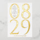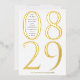 Diese moderne und fette Save the Date-Karte zeigt das Datum Ihrer Hochzeit in extra großen Zahlen in realem Goldfolientyp auf weißem Hintergrund. Die Namen des Paares und der Ort der Hochzeit werden innerhalb der Null für Monate von Januar bis September und zum links von der Zahl von Oktober bis Dezember angezeigt. Diese schicke Save the Date-Karte wird eine Aussage machen und den Ton für Ihre Hochzeit Set. Die Rückseite des Save the Date hat Platz für ein vollflächiges Foto.