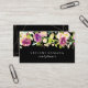 Moderne Aquarell-Blume und Grünflächen in lebhaften Farbtönen lila, rosa, pfirsichfarben und grün mit goldgeometrischen Akzenten auf der Rückseite. Hintergrundfarbe, schwarz dargestellt, kann angepasst werden.