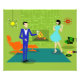 Dieses Foto aus dem Mittelalter erinnert an eine romantische Komödie. Das minimalistische Design der 60er Jahre besticht durch ein ansprechendes Cartoon-Paar, das einen romantischen Abend bei Zuhause genießt. Das elegante Zimmer besticht durch eine grüne Steinmauer und einen Kamin. Die Einrichtung der Zimmer umfasst einen orangefarbenen, mit einem Stuhl passenden Sitzbereich, eine rote Wanduhr, eine gelbe Sternexplosion, eine Lampe mit Sputnik und einen orangefarbenen Beistelltisch, der zu einem tragbaren, grünen Schallplattenspieler Zuhause. Auf dem Fußboden neben dem Endtisch sieht man eine Schallplatte aus einem kitschigen Albumcover. In der Mitte des grünen Fußbodens befindet sich ein großer, rechteckiger, aquamariner Teppich. Mitten in der Szene haben wir ein sehr raffiniertes Paar. Es gibt einen suave Mann in einem königsblauen Anzug, weißes Shirt und blaue Bogen Krawatte. Der große, dunkle und gut aussehende Mann blickt auf seinen hübschen Begleiter. Die elegante, ravenhaarige Frau trägt ein üppiges Aqua-Kleid. Sie besitzen jeweils ein Kristallmartini-Glas mit schwimmendem Olivenöl. Prost! Hier zum perfekten Abend bei Zuhause!