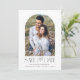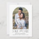 Verkünden Sie Ihr Hochzeitstag stilvoll mit unserem modernen Foto Save the Date. Die einfache Save the Date-Karte zeigt das Foto Ihrer Verlobung in einem weißen Bogen-Rahmen. "Save the Date" wird in schwarz-modernen Serif- und Script-Schriftart angezeigt. Personalisieren Sie die Vorderseite des Save the Date, indem Sie Ihre Namen, das Hochzeitstermin und den Hochzeitsort hinzufügen. Die Karte zeigt ein schwarz-weißes Streifen-Muster an.