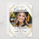 Dieses Geburtstags- und Abschluss-Angebot bietet eine moderne, funkelnde Schönheit mit zauberhaften Goldtönen und einzigartigen geometrischen Mustern. Das Porträt-Foto des Empfängers wird in einem geometrischen, funkelnden Rahmen platziert, was ein herausragendes und attraktives Highlight darstellt. Detaillierte Veranstaltungsinformationen werden übersichtlich präsentiert und helfen den Gästen, den Inhalt leicht zu verstehen.