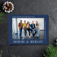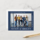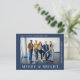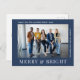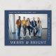 Moderne, blaue Weihnachtspostkarte mit einem Foto Ihres Geschäftsteams und "Merry & Bright" in stilvoller weißer Typografie. Personalisieren Sie Ihren Firmennamen und Kunden/Kunden Dankeschön Nachricht in einfachen weißen Typografie. Fügen Sie auf der Rückseite eine weitere personalisierte Dankesbotschaft hinzu.